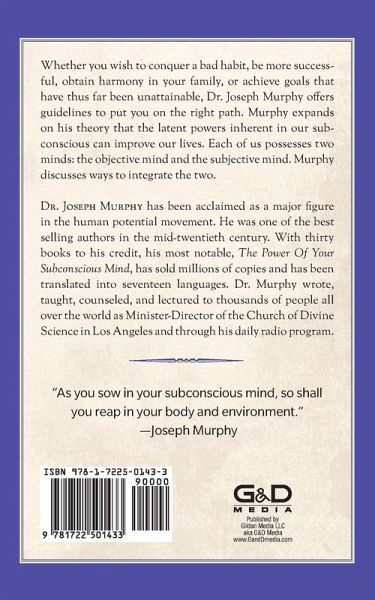 Dr. Joseph Murphy expands on his theory that the latent powers inherent in our subconscious can improve our lives. Each of us possesses two minds: the objective mind and the subjective mind. Murphy discusses ways to integrate the two. He also explains how to harness the power of the mind, especially the subconscious, and gives specific steps to nourish your conscious mind with the tools and attitudes that will open up the infinite power of your subconscious mind. Whether you wish to conquer a bad habit, be more successful, obtain harmony in your family, or achieve goals that have thus far been unattainable, Murphy offers guidelines to put you on the right path. "As you sow in your subconscious mind, so shall you reap in your body and environment." ,Äï Dr. Joseph Murphy