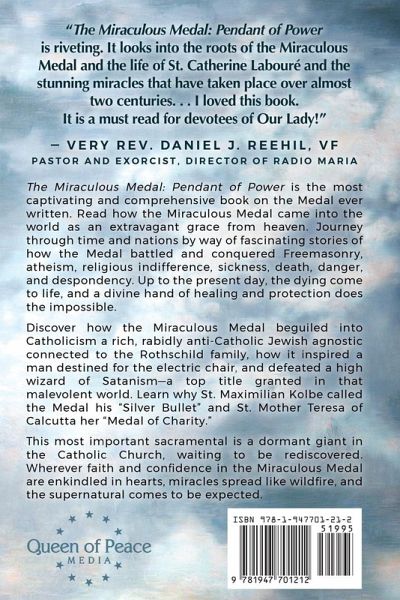 The most highly praised, exciting, and comprehensive book on the Miraculous Medal ever written. Fr. Daniel Reehil, VF, exorcist and Director of Radio Maria, called it "riveting"..."a must read." Fr. Chris Alar, MIC, found it "fascinating," Bishop Joseph Coffey labeled it "excellent," and Fr. Jose D'Souza, OFM, declared it "a masterpiece." The Miraculous Medal: Pendant of Power is an unprecedented and captivating compilation of nearly two centuries of iron-clad proof of the Medal's real power: Mary's intercession before the throne of God. It begins with the story of St. Catherine Labouré, the apostle of the Miraculous Medal, captured in a new light with little-known, intriguing facts. Then it tells how the Medal grew in fame by helping convert to Catholicism a rich, rabidly anti-Catholic Jewish agnostic connected to the Rothschild family. The book also recounts how the Medal helped save a man destined for the electric chair, and how It defeated a high wizard of Satanism, the top title granted in that malevolent world-and the head-to-head battle was no contest. The book continues to journey through time and nations, telling tales of how the Medal has battled and conquered Freemasonry, atheism, religious indifference, sickness, death, danger, and despondency. The graces that have followed the Medal, rippling through time into the present day, have done nothing less than bring the Gospel to life. The blind see, the crippled walk, the dying come to life, and a divine hand of extraordinary, supernatural protection does the impossible-but most importantly, lost souls are brought through Mary into the Heart of Jesus Christ. Read this most inspiring book, and avail yourself now of the daily graces that that heaven has in store for you.