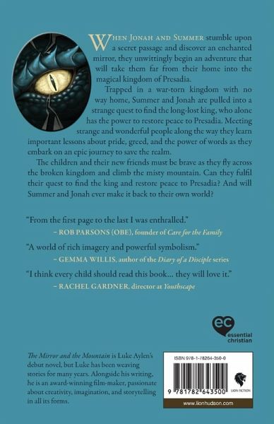 In Luke Aylen's The Mirror and the Mountain, a title released in association with Essential Christian, two 11-year-olds pass through a mirror and end up in a magical kingdom called Presadia. Trapped in a war-torn kingdom with no way home, Summer and Jonah are pulled into a strange quest to find the long-lost king, who alone has the power to restore peace to Presadia. Meeting strange and wonderful people along the way, including the dwarf high lord, the elf queen and a fire-breathing dragon, they learn important lessons about pride, greed, and the power of words as they embark on an epic journey to save the realm. The children and their new friends must be brave as they fly across the broken kingdom and climb a misty mountain. Can they fulfil their quest to find the king and restore peace to Presadia? And will Summer and Jonah ever make it back to their own world?