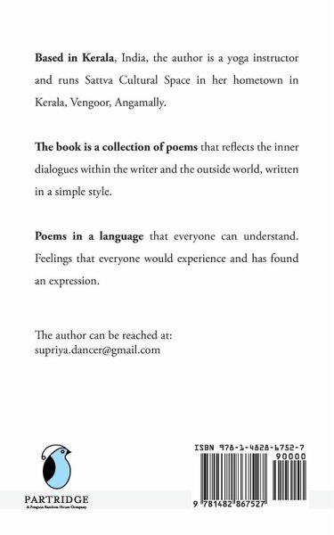 Based in Kerala, India, the author is a yoga instructor and runs Sattva Cultural Space in her hometown in Kerala, Vengoor, Angamally.