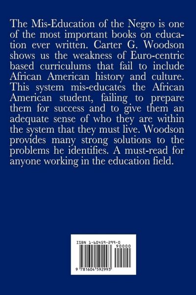 The Mis-Education of the Negro is one of the most important books on education ever written. Carter G. Woodson shows us the weakness of Euro-centric based curriculums that fail to include African American history and culture. This system mis-educates the African American student, failing to prepare them for success and to give them an adequate sense of who they are within the system that they must live. Woodson provides many strong solutions to the problems he identifies. A must-read for anyone working in the education field.