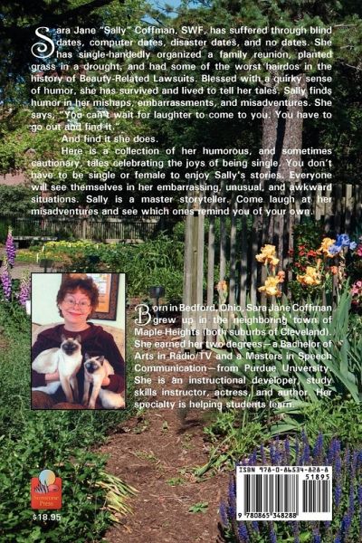 Sara Jane "Sally" Coffman, SWF, has suffered through blind dates, computer dates, disaster dates, and no dates. She has single-handedly organized a family reunion, planted grass in a drought, and had some of the worst hairdos in the history of Beauty-Related Lawsuits. Blessed with a quirky sense of humor, she has survived and lived to tell her tales. Sally finds humor in her mishaps, embarrassments, and misadventures. She says, "You can't wait for laughter to come to you. You have to go out and find it." And find it she does. Here is a collection of her humorous, and sometimes cautionary, tales celebrating the joys of being single. You don't have to be single or female to enjoy Sally's stories. Everyone will see themselves in her embarrassing, unusual, and awkward situations. Sally is a master storyteller. Come laugh at her misadventures and see which ones remind you of your own.