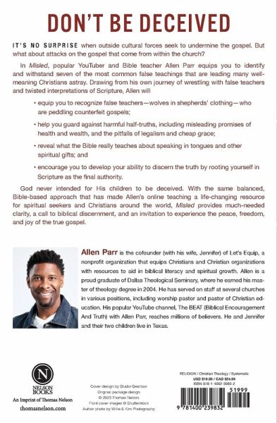 The gospel is under attack today--not only from outside cultural forces but also from within the church. In Misled, popular YouTuber and Bible teacher Allen Parr equips readers to identify and withstand seven of the most common false teachings that undermine the gospel and lead many well-meaning Christians astray.