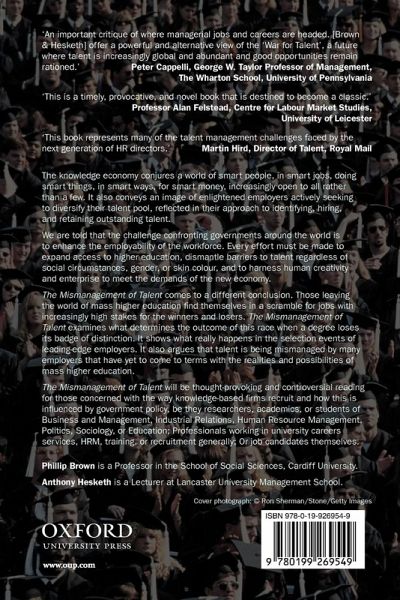 The Mismanagement of Talent will be thought-provoking and controversial reading for those involved in the recruitment of graduates, and those concerned with the way knowledge-based firms recruit and the impact of higher education policy: