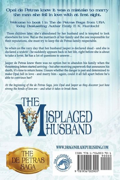Opal de Petras knew it was a mistake to marry the man she fell in love with at first sight. Welcome to book 1 in The de Petras Saga from USA Today Bestselling Author Emily E K Murdoch! Three children later, she's abandoned by her husband and is tempted to look elsewhere for love. But as the matriarch of her family and the one responsible for their reputations, she must try to keep the de Petras family respectable. So when on the very day that her husband Jasper is declared dead - and she is declared a widow - he suddenly appears back in her life, right before she is about to take a lover, he has a lot of questions to answer... Jasper de Petras knew there was no option but to abandon his family when the threatening letters started arriving - but after receiving paperwork that announces his death, it's time to return home. Unsure whether the danger is past and determined to make Opal fall in love - and marry him - again, could it all fall apart before he's able to convince her? At the beginning of the de Petras Saga, join Opal and Jasper as they discover just how strong the bonds of love are - and what it takes to break them. This full length novel is a steamy Regency romance with a happily ever after, no cliffhangers, and is part of a series that can be read in any order, but is best enjoyed in sequence. The de Petras Saga Book 1 - The Misplaced Husband Book 2 - The Impoverished Dowry Book 3 - The Contrary Debutante Book 4 - The Determined Mistress Book 5 - The Convenient Engagement Book 6 - The Disrespectful Duke Book 7 - The Overlooked Wallflower Book 8 - The Runaway Elopement Book 9 - The European Adventure Book 10 - The Unexpected Proposal Book 11 - The Determined Suffragette Book 12 - The Scandalous Rumors Book 13 - The Argumentative Bluestocking Book 14 - The Forgotten Bachelor
