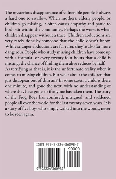 The mysterious disappearance of vulnerable people is always a hard one to swallow. When mothers, elderly people, or children go missing, it often causes empathy and panic to both stir within the community. Perhaps the worst is when children disappear without a trace. Children abductions are very rarely done by someone that the child doesn't know. While stranger abductions are far rarer, they're also far more dangerous. People who study missing children have come up with a formula: or every twenty-four hours that a child is missing, the chance of finding them alive reduces by half. As terrifying as that is, it is the unfortunate reality when it comes to missing children. But what about the children that just disappear out of thin air? In some cases, a child is there one minute, and gone the next, with no understanding of where they have gone, or if anyone has taken them. The story of the Frog Boys has confused, intrigued, and saddened people all over the world for the last twenty-seven years. It is a story of five boys who simply walked into the woods, never to be seen again.