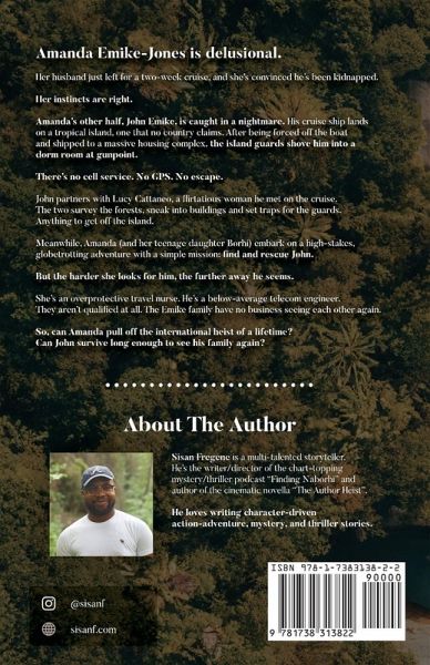 Amanda Emike-Jones is delusional. Her husband just left for a two-week cruise, and she's convinced he's been kidnapped. Her instincts are right. Amanda's other half, John Emike, is caught in a nightmare. His cruise ship lands on a tropical island, one that no country claims. After being forced off the boat and shipped to a massive housing complex, the island guards shove him into a dorm room at gunpoint. There's no cell service. No GPS. No escape. John partners with Lucy Cattaneo, a flirtatious woman he met on the cruise. The two survey the forests, sneak into buildings and set traps for the guards. Anything to get off the island. Meanwhile, Amanda (and her teenage daughter Borhi) embark on a high-stakes, globetrotting adventure with a simple mission: find and rescue John. But the harder she looks for him, the further away he seems. She's an overprotective travel nurse. He's a below-average telecom engineer. They aren't qualified at all. The Emike family have no business seeing each other again. So, can Amanda pull off the international heist of a lifetime? Can John survive long enough to see his family again? The Missing Island is for fans of fast-paced character-driven adventure thriller stories.