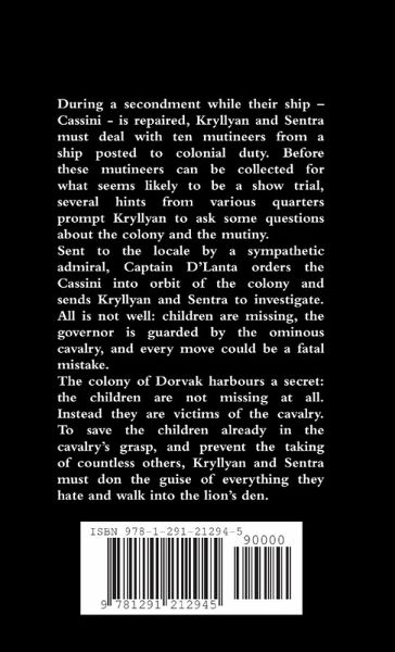During a secondment while their ship - Cassini - is repaired, Kryllyan and Sentra must deal with ten mutineers from a ship posted to colonial duty. Before these mutineers can be collected for what seems likely to be a show trial, several hints from various quarters prompt Kryllyan to ask some questions about the colony and the mutiny. Sent to the locale by a sympathetic admiral, Captain D'Lanta orders the Cassini into orbit of the colony and sends Kryllyan and Sentra to investigate. All is not well: children are missing, the governor is guarded by the ominous cavalry, and every move could be a fatal mistake. The colony of Dorvak harbours a secret: the children are not missing at all. Instead they are victims of the cavalry. To save the children already in the cavalry's grasp, and prevent the taking of countless others, Kryllyan and Sentra must don the guise of everything they hate and walk into the lion's den.