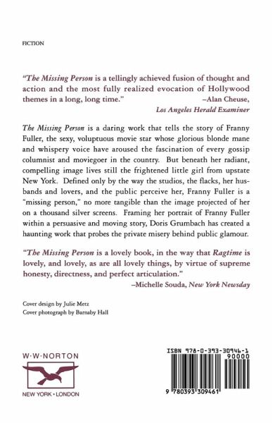 The Missing Person is a daring work that tells the story of Franny Fuller, the sexy, voluptuous movie star whose glorious blonde mane and whispery voice have aroused the fascination of every gossip columnist and moviegoer in the country. But beneath her radiant, compelling image lives still the frightened little girl from upstate New York. Define only by the way the studios, the flacks, her husbands and lovers, and the public perceive her, Franny Fuller is a "missing person," no more tangible than the image projected of her on a thousand silver screens. Framing her portrait of Franny Fuller within a persuasive and moving story, Doris Grumbach has created a haunting work that probes the private misery behind public glamour.