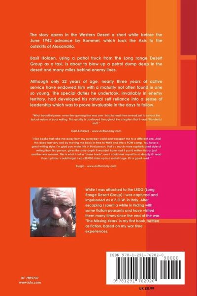 While I was attached to the LRDG (Long Range Desert Group) I was captured and imprisoned as a P.O.W. in Italy. After escaping I spent a while in hiding with some Italian peasants and have visited them many times since the end of the war. "The Missing Years" is my first book, written as fiction, based on my war time experiences.