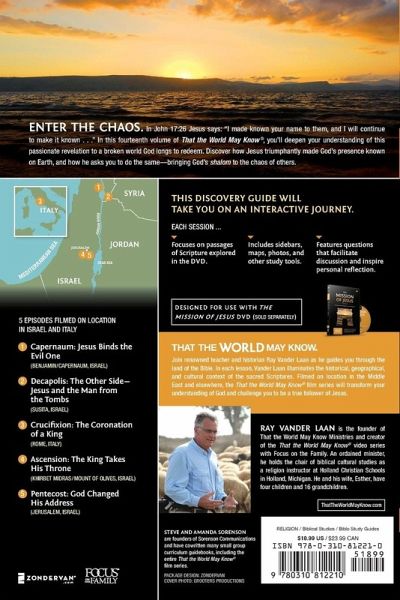 Deepen your understanding of Jesus' passionate longing to redeem a broken world. In this fourteenth volume of the That The World May Know series, take a tour through the land of the Bible, following in the paths of Jesus' earthly ministry as he triumphantly and lovingly made God's presence known on Earth. In these dynamic lessons with teacher and historian Ray Vander Laan, you'll learn how Jesus is calling you to share his vision of Kingdom living. This discovery guide includes passages of Scripture explored in the DVD (sold separately); questions for discussion and personal reflection; personal Bible studies to help you deepen your learning experience between sessions; as well as sidebars, maps, photos, and other study tools. Sessions include: Capernaum: Jesus Blinds the Evil One Decapolis: The Other Side--Jesus and the Man Crucifixion: The Coronation of a King Ascension: The King Takes His Throne Pentecost: God Changed His Address Designed for use with The Mission of Jesus Video Study 9780310812586 (sold separately). _______________ THAT THE WORLD MAY KNOW Join renowned teacher and historian Ray Vander Laan as he guides you through the land of the Bible. In each lesson, Vander Laan illuminates the historical, geographical, and cultural context of the sacred Scriptures. Filmed on location in the Middle East and elsewhere, the That the World May Know film series will transform your understanding of God and challenge you to be a true follower of Jesus.
