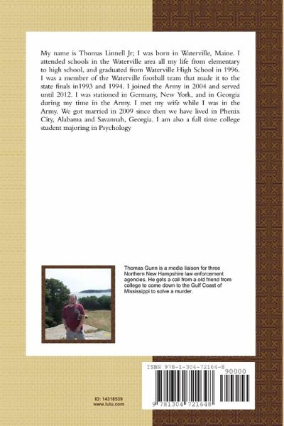 Thomas Gunn is a media liaison for three Northern New Hampshire law enforcement agencies, who gets a call from a old friend from college to go down to the Gulf coast of Mississippi to solve a murder.