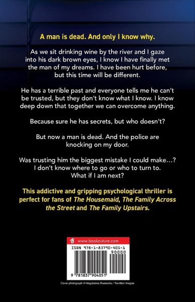 A man is dead. And only I know why. ¿ As we sit drinking wine by the river and I gaze into his dark brown eyes, I know I have finally met the man of my dreams. I have been hurt before, but this time will be different. He has a terrible past and everyone tells me he can't be trusted, but they don't know what I know. I know deep down that together we can overcome anything. Because sure he has secrets, but who doesn't? But now a man is dead. And the police are knocking on my door. Was trusting him the biggest mistake I could make...? I don't know where to go or who to turn to. What if I am next? This addictive and gripping psychological thriller is perfect for fans of The Housemaid, The Family Across the Street and The Family Upstairs. What readers are saying about Sam Hepburn: 'WOW!!! What an unexpected ending!!!!... Fantastic page turning psychological thriller!!!!... I was kept on the edge of my seat and biting my nails while my heart was in my throat... Explosive twists... I LOVED it.' Bookworm86, ¿¿¿¿¿ 'OMG... Tornado type twists... Wow... a heart-pounding read... 5 stars!' Two Girls and a Book Obsession, ¿¿¿¿¿ 'Hooks you from the get go... Fantastic... Kept me turning the pages... Truly brilliant... LOVED IT! LOVED IT! LOVED IT!' Goodreads reviewer, ¿¿¿¿¿ 'Wow I loved this book... Fantastic... Exceptional twists and turns... I could not put it down... I stayed up into the early hours to finish it.' Goodreads reviewer, ¿¿¿¿¿ 'Brilliantly twisty... Kept me up way past bedtime because I was so absorbed... Absolutely worth losing sleep!' Goodreads reviewer, ¿¿¿¿¿ 'Holy Moly this book is flipping awesome... Finished this in two sittings it was that good... Literally had me holding my breath.' NetGalley reviewer, ¿¿¿¿¿
