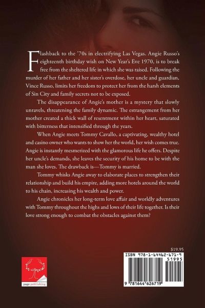 Flashback to the '70s in electrifying Las Vegas. Angie Russo's eighteenth birthday wish on New Year's Eve, 1970, is to break free from the sheltered life in which she was raised. Following the murder of her father and her sister's overdose, her uncle and guardian, Vince Russo, limits her freedom to protect her from the harsh elements of Sin City and family secrets not to be exposed. Angie has been estranged from her mother for many years. Betty Russo's life and whereabouts is a mystery that slowly unravels, threatening the family dynamic. When Angie meets Tommy Cavallo, a captivating, wealthy, hotel and casino owner who wants to show her the world, she becomes mesmerized with the glamorous life he offers. Against her uncle's wishes, she leaves the security of his home to be with the man she loves. The drawback is, Tommy is married. Tommy whisks Angie away to elaborate places to strengthen their relationship and build his empire, adding more hotels around the world to his chain. Angie chronicles her long-term love affair and worldly adventures with Tommy throughout the highs and lows of their life together. Is their love strong enough to combat the obstacles against them?