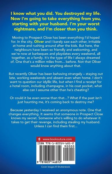 I know what you did. You destroyed my life. Now I'm going to take everything from you, starting with your husband. I'm your worst nightmare, and I'm closer than you think. Moving to Prospect Close has been everything I'd hoped for. In the city, Oliver and I barely saw each other, irritable at home and rushing around after the kids. But here, the neighbours have been so friendly and welcoming, and we're now at barbeques and playdates every weekend, all together, as a family. It's the type of life I always dreamed of. One that's a million miles from... before. Not that Oliver would know anything about that. But recently Oliver has been behaving strangely - staying out late, working weekends and absent even when home. I don't want to question our idyllic life, but when I find a receipt for a hotel room, including champagne, in his coat pocket, what else can I assume other than he's cheating? Or could it be even worse than that...? What if the past isn't just haunting me, it's coming back to destroy me? Because yesterday I received an anonymous note. One that changes everything. It seems that someone in Prospect Close knows my secret. Someone who's willing to do whatever it takes to get their revenge, including stealing my husband. Unless I can find them first... An astonishing, compelling page-turner with a jaw-dropping twist, if you love Lisa Jewell, K. L. Slater and Jackie Kabler, you'll love The Mistress Next Door. Readers love Lesley Sanderson: 'O.M.G!!... So thrilling, mind blowing, twisted, and so intense you are sitting on the edge of your seat... You won't be able to stop reading... The secrets these characters are hiding are huge and when they come out, OH BOY!!' Heidi Lynn's Book Reviews ¿¿¿¿¿¿¿¿ 'A fantastic page turner!!! What an absolutely gripping heart racing story!!!... I just could not put it down and couldn't go to sleep until I had finished it!!... It is a truly captivating and page turning... addictive... gripping, unputdownable psychological thriller that will leave you on the edge of your seat with a pounding heart!!!' Bookworm86 ¿¿¿¿¿¿¿¿¿¿ 'This is one edge-of-your-seat, nail-biting ride... Addictive... Jaw dropping.' Once Upon a Book Blog ¿¿¿¿¿¿¿¿¿¿ 'Absolutely brilliant... A fantastic page turner, full of twists and turns... Brilliantly addictive.' NetGalley reviewer ¿¿¿¿¿¿¿¿¿¿ 'Massively addictive... You will devour in a single sitting, biting your nails to the quick, as you race through the pages.' Goodreads reviewer ¿¿¿¿¿¿¿¿¿¿ 'This book had everything... surprises that you don't see coming, secrets and lies and lots of intrigue!' Goodreads reviewer ¿¿¿¿¿¿¿¿¿¿ 'Wow, wow, wow, what a jaw-dropping read... I loved every minute of it... Took me on a rollercoaster ride I never wanted to get off from. Loved it.' Blue Moon Blogger