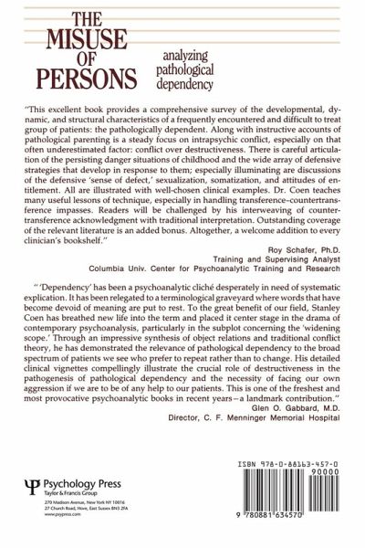 In this major contribution to contemporary psychoanalysis, Stanley Coen illuminates a heretofore undescribed character structure especially resistant to analytic process. Pathologically dependent patients, for Coen, are identified not by surface character traits, but by their response to the intrapsychic demands of analysis. Such patients remain in treatment, sometimes contentedly, sometimes amid rebukes and complaints, but they do not profit from it. Their inability to use insight, especially in the transference, is matched by a proclivity for sadomasochistic enmeshment. In analysis, this tendency translates into a continuing dependent attachment to the analyst. In exploring the genetic roots of pathological dependency, Coen ranges beyond extant trauma theories in describing a pattern of parent-child interaction in which repetitive behavioral enactments substitute for the acceptance and resolution of conflicts, both intrapsychic and interpersonal. In analysis, pathologically dependent patients use the analyst as they have come to use significant others throughout their lives: as part of a defensive structure characterized by repetitive enactments and a refusal to face what is wrong with them. This "misuse of others" is infused with destructiveness, hostility, and rage, and the analyst necessarily becomes the object of these powerful emotions. With such patients, then, the road to therapeutic progress invariably passes through the analysis of mutual transferential and countertransferential hate, the patient's tempting invitations to collusion and avoidance notwithstanding.