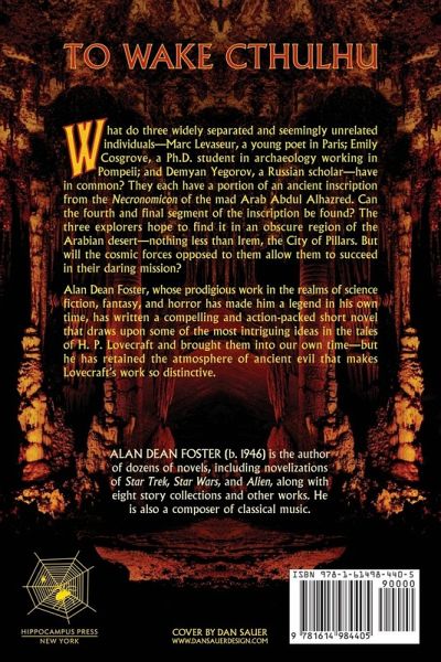 What do three widely separated and seemingly unrelated individuals-Marc Levaseur, a young poet in Paris; Emily Cosgrove, a Ph.D. student in archaeology working in Pompeii; and Demyan Yegorov, a Russian scholar-have in common? They each have a portion of an ancient inscription from the Necronomicon of the mad Arab Abdul Alhazred. Can the fourth and final segment of the inscription be found? The three explorers hope to find it in an obscure region of the Arabian desert-nothing less than Irem, the City of Pillars. But will the cosmic forces opposed to them allow them to succeed in their daring mission? Alan Dean Foster, whose prodigious work in the realms of science fiction, fantasy, and horror has made him a legend in his own time, has written a compelling and action-packed short novel that draws upon some of the most intriguing ideas in the tales of H. P. Lovecraft and brought them into our own time-but he has retained the atmosphere of ancient evil that makes Lovecraft's work so distinctive. Alan Dean Foster (b. 1946) is the author of dozens of novels, including novelizations of Star Trek, Star Wars, and Alien, along with eight story collections and other works. He is also a composer of classical music.