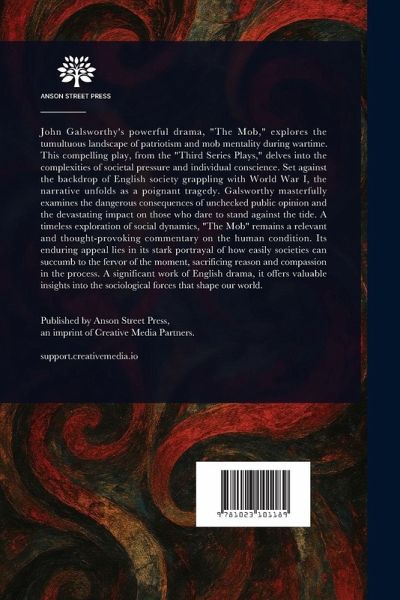 John Galsworthy's powerful drama, "The Mob," explores the tumultuous landscape of patriotism and mob mentality during wartime. This compelling play, from the "Third Series Plays," delves into the complexities of societal pressure and individual conscience. Set against the backdrop of English society grappling with World War I, the narrative unfolds as a poignant tragedy. Galsworthy masterfully examines the dangerous consequences of unchecked public opinion and the devastating impact on those who dare to stand against the tide. A timeless exploration of social dynamics, "The Mob" remains a…mehr