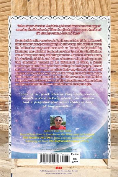 "What do you do when the fabric of the Multiverse has been ripped asunder, the Sisterhood of Wicca has fixed a price on your head and it's literally raining cats and dogs?" So starts this roller-coaster of a book as our intrepid hero, Howard, finds himself transported through a time warp into another world. He meets strange creatures such as Benecia, a shape-shifting Meriodon who disdains food and survives by sucking the life force out of living creatures, including humans. And then there's Arnie, his Aardvark sidekick and fellow adventurer who just happens to talk. Constantly pursued by the Sisterhood of Wicca, a female mafioso gang intimidating and controlling the local people, Howard and his new friends must negotiate their way through all sorts of dangers as he seeks a way back to his own planet and time plane. With more twists & turns in the plot than a warehouse of Mobius Strips, the author has created a highly enjoyable romp through time & space, written in his own inimitable and deadpan style.