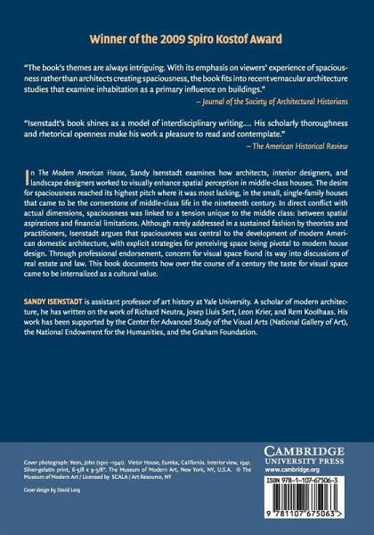 Sandy Isenstadt examines how architects, interior designers, and landscape designers worked to enhance spatial perception in middle class houses visually. The desire for spaciousness reached its highest pitch where it was most lacking, in the small, single-family houses that came to be the cornerstone of middle class life in the nineteenth century. In direct conflict with actual dimensions, spaciousness was linked to a tension unique to the middle class - between spatial aspirations and financial limitations. Although rarely addressed in a sustained fashion by theorists, practitioners, or the inhabitants of houses themselves, Isenstadt argues that spaciousness was central to the development of modern American domestic architecture, with explicit strategies for perceiving space being pivotal to modern house design. Through professional endorsement, concern for visual space found its way into discussion of real estate and law.