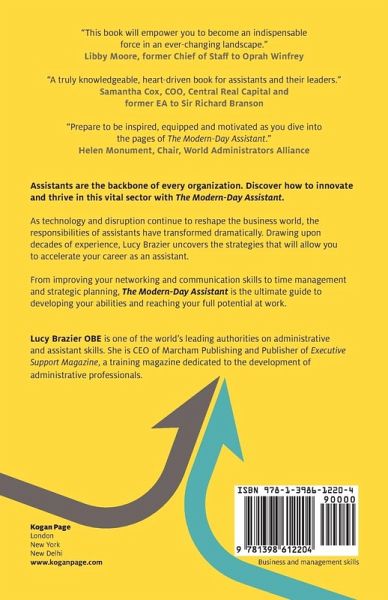 As technology and disruption continue to reshape the business world, the responsibilities and skills of a modern-day assistant have transformed. Executives and leaders are more dependent than ever on the unique and varied responsibilities of their administrators and assistants. Drawing upon decades of experience, Lucy Brazier OBE demystifies the strategies and approaches that will allow you to reach your full potential as an assistant, and how to accelerate your career while doing so.