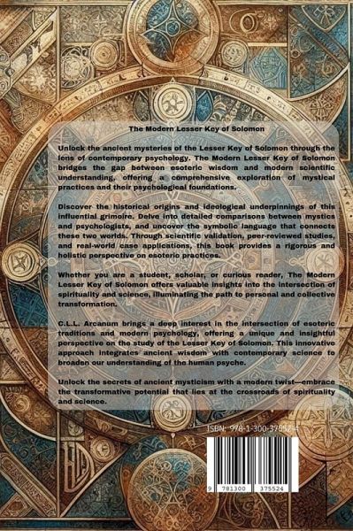 Unlock the ancient mysteries of the Lesser Key of Solomon through the lens of contemporary psychology. The Modern Lesser Key of Solomon bridges the gap between esoteric wisdom and modern scientific understanding, offering a comprehensive exploration of mystical practices and their psychological foundations. Discover the historical origins and ideological underpinnings of this influential grimoire. Delve into detailed comparisons between mystics and psychologists, and uncover the symbolic language that connects these two worlds. Through scientific validation, peer-reviewed studies, and real-world case applications, this book provides a rigorous and holistic perspective on esoteric practices. Whether you are a student, scholar, or curious reader, The Modern Lesser Key of Solomon offers valuable insights into the intersection of spirituality and science, illuminating the path to personal and collective transformation. C.L.L. Arcanum brings a deep interest in the intersection of esoteric traditions and modern psychology, offering a unique and insightful perspective on the study of the Lesser Key of Solomon. This innovative approach integrates ancient wisdom with contemporary science to broaden our understanding of the human psyche. Key Features Historical Insights: A detailed exploration of the origins and history of the Lesser Key of Solomon, including its cultural and philosophical context. Comparative Analysis: An in-depth comparison of the perspectives of mystics and psychologists, highlighting the intersections and unique contributions of each field. Symbolic Interpretation: A thorough examination of the core ideologies and symbolic representations in the grimoire, enriched with psychological interpretations and illuminating case studies. Scientific Validation: A review of scientific studies and peer-reviewed articles related to esoteric practices, providing robust empirical evidence and analysis. Practical Applications: Real-world case studies illustrate the practical use of esoteric practices and their significant psychological impacts. Holistic Approach: An integrated framework that combines esoteric knowledge and psychological theories, offering a comprehensive understanding of the human psyche. Unlock the secrets of ancient mysticism with a modern twist-embrace the transformative potential that lies at the crossroads of spirituality and science.