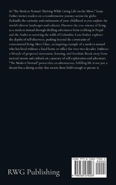 In "The Modern Nomad: Thriving While Living Life on the Move," Luna Ember invites readers on a transformative journey across the globe. Rekindle the curiosity and enthusiasm of your childhood as you explore the world's diverse landscapes and cultures. Discover the true essence of living as a modern nomad through thrilling adventures from trekking in Nepal and the Andes to surviving the wilds of Columbia. Luna Ember explores the depths of self-discovery, pushing beyond the constraints of conventional living. Meet Chao, an inspiring example of a modern nomad who has lived without a fixed home or office for over two decades. Embrace a lifestyle of perpetual movement, learning, and freedom. Break away from societal norms and embark on a journey of self-exploration and adventure. "The Modern Nomad" proves that an adventurous, fulfilling life is not just a dream but a daring reality that awaits those bold enough to pursue it.