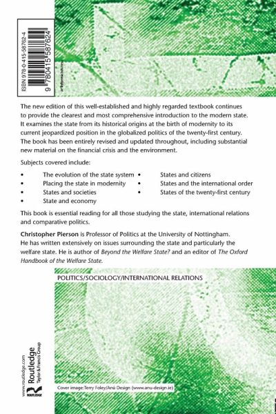 The new edition of this well-established and highly regarded textbook continues to provide the clearest and most comprehensive introduction to the modern state. It examines the state from its historical origins at the birth of modernity to its current jeopardized position in the globalized politics of the 21st Century. The book has been entirely revised and updated throughout, including substantial new material on the financial crisis and the environment. Subjects covered include: ¿ The evolution of the state system ¿ Placing the state in modernity ¿ States and societies ¿ State and economy ¿ States and citizens ¿ States and the international order ¿ States of the twenty-first century This book is essential reading for all those studying the state, international relations and comparative politics.