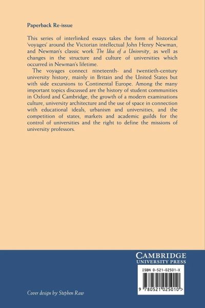 This series of interlinked essays takes the form of historical 'voyages' around the Victorian intellectual John Henry Newman, and Newman's classic work The Idea of a University, as well as changes in the structure and culture of universities which occurred in Newman's lifetime. The voyages connect nineteenth- and twentieth-century university history, mainly in Britain and the United States but with side excursions to continental Europe. Among the many important topics discussed are the history of student communities in Oxford and Cambridge, the growth of a modern examinations culture, university architecture and the use of space in connection with educational ideals, urbanism and universities, and the competition of states, markets and academic guilds for the control of universities and the right to define the missions of university professors.