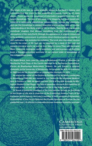 The origin of life was an event probably unique in the Earth's history, and reconstructing this event is like assembling a puzzle made up of many pieces. These pieces are composed of information acquired from many different disciplines. The aim of this 1999 book is to integrate discoveries in astronomy, planetology, palaeontology, biology and chemistry, and use this knowledge to present plausible scenarios that give us a better understanding of the likely origin of life on Earth. Twenty-three top experts contribute chapters that discuss everything from the environment and atmosphere of the early Earth, through the appearance of organic molecules in the prebiotic environment, to primitive chiral chemical systems capable of self-replication and evolution by mutation. The book also discusses various clues to the origin of life that can be obtained by a study of the past and present microbial world, as well as from Saturn's moon Titan and the planet Mars. Chemists, biologists, earth scientists, and astronomers will find this book a thought-provoking summary of our knowledge of this extraordinary event.
