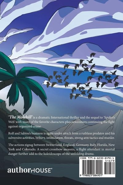 'The Molehill' is a dramatic International thriller and the sequel to 'Spider's Web' with many of the favorite characters plus newcomers continuing the fight against organized crime. Rolf and Sabine's business is again under attack from a ruthless predator and his subversive activities, bribery, intimidation, threats, strong arm tactics and murder. The actions zigzag between Switzerland, England, Germany, Italy, Florida, New York and Colorado. A secret Crossbow Assassin, a flight attendant in mortal danger further add to the kaleidoscope of the unfolding drama.