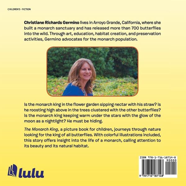Christiane Richards Germino lives in Arroyo Grande, California, where she built a monarch sanctuary and has released more than 700 butterflies into the wild. Through art, education, habitat creation, and preservation activities, Germino advocates for the monarch population.