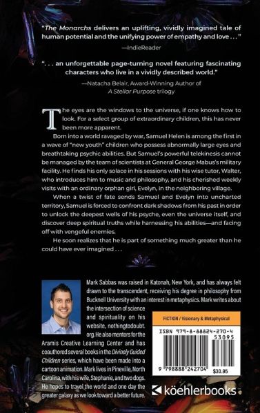 Winner of the Silver Medal in the 2025 Nautilus Book Awards: Young Adult Fiction Winner of the International Impact Book Awards: Science Fiction/Fantasy and YA Fiction Winner of the Literary Titan Gold Book Award: Fiction Winner of 2024 NYC Big Book Award: Visionary Fiction Winner of American Book Fest's 2024 American Fiction Awards in the category of New Age Fiction. Winner of Firebird Book Awards in the category of Science Fiction and Dystopian. "A thought-provoking and spiritual dystopian quest." -Kirkus Reviews ". . . an uplifting, vividly imagined tale of human potential and the unifying power of empathy and love." -IndieReader ". . . an unforgettable page-turning novel featuring fascinating characters who live in a vividly described world." -Natacha Belair, Award-Winning Author of A Stellar Purpose trilogy The eyes are the windows to the universe, if one knows how to look. For a select group of extraordinary children, this has never been more apparent. Born into a world ravaged by war, Samuel Helen is among the first in a wave of "new youth" children who possess abnormally large eyes and breathtaking psychic abilities. But Samuel's powerful telekinesis cannot be managed by the team of scientists at General George Mabus's military facility. He finds his only solace in his sessions with his wise tutor, Walter, who introduces him to music and philosophy, and his cherished weekly visits with an ordinary orphan girl, Evelyn, in the neighboring village. When a twist of fate sends Samuel and Evelyn into uncharted territory, Samuel is forced to confront dark shadows from his past in order to unlock the deepest wells of his psyche, even the universe itself, and discover deep spiritual truths while harnessing his abilities-and facing off with vengeful enemies. He soon realizes that he is part of something much greater than he could have ever imagined . . .