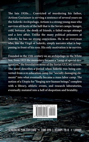 The late 1920s… Convicted of murdering his father, Artiom Goriainov is serving a sentence of several years on the Solovki Archipelago. Artiom is a strong young man who survives all facets of the hell that is the Soviet camps: hunger, cold, betrayal, the death of friends, a failed escape attempt and a love affair. Unlike the many political prisoners at Solovki, he has no strong convictions. He is an everyman who, like the Virgil of Solovki, simply narrates what is happening in front of his eyes. His only motivation is to survive. Founded in the 15th century on an archipelago in the White Sea, from 1923 the monastery became a "camp of special designation," the foundation stone of the Soviet GULAG system. The novel describes a period when Solovki was being converted from a re-education camp for "socially damaging elements" into what eventually became a mass labor camp. The notion of a Utopia for "forging new human beings," complete with a library, athletic events, and research laboratories, eventually mutated into a hell of despotism and brutality. Published with the support of the Institute for Literary Translation, Russia.