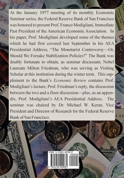 At the January 1977 meeting of its monthly Economic Seminar series, the Federal Reserve Bank of San Francisco was honored to present Prof. Franco Modigliani, Immediate Past President of the American Economic Association. In his paper, Prof. Modigliani developed some of the themes which he had first covered last September in his AEA Presidential Address, ¿gThe Monetarist Controversy"YOr, Should We Forsake Stabilization Policies?¿h The Bank was doubly fortunate to obtain, as seminar discussant, Nobel Laureate Milton Friedman, who was serving as Visiting Scholar at this institution during the winter term. This supplement to the Bank¿fs Economic Review contains Prof. Modigliani¿fs lecture, Prof. Friedman¿fs reply, the discussion between the two and a floor discussion"Yplus, as an appendix, Prof. Modigliani¿fs AEA Presidential Address. The seminar was chaired by Dr. Michael W. Keran, Vice President and Director of Research for the Federal Reserve Bank of San Francisco.