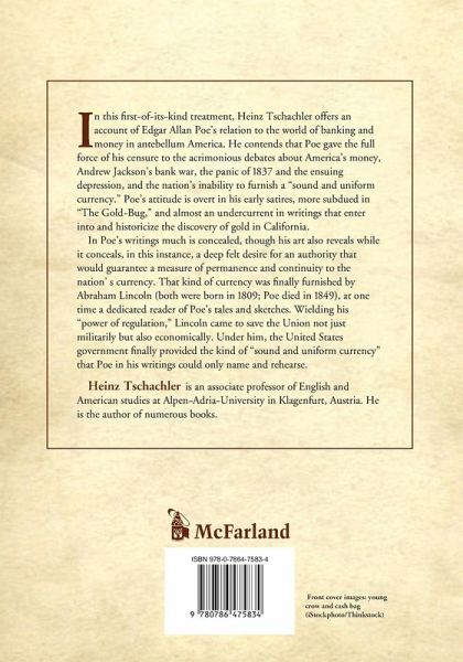 In this first-of-its-kind treatment, Heinz Tschachler offers an account of Edgar Allan Poe's relation to the world of banking and money in antebellum America. He contends that Poe gave the full force of his censure to the acrimonious debates about America's money, Andrew Jackson's bank war, the panic of 1837 and the ensuing depression, and the nation's inability to furnish a ""sound and uniform currency."" Poe's attitude is overt in his early satires, more subdued in ""The Gold-Bug,"" and almost an undercurrent in writings that enter into and historicize the discovery of gold in California. In Poe's writings much is concealed, though his art also reveals while it conceals, in this instance, a deep felt desire for an authority that would guarantee a measure of permanence and continuity to the nation' s currency. That kind of currency was finally furnished by Abraham Lincoln (both were born in 1809; Poe died in 1849), at one time a dedicated reader of Poe's tales and sketches. Wielding his ""power of regulation,"" Lincoln came to save the Union not just militarily but also economically. Under him, the United States government finally provided the kind of ""sound and uniform currency"" that Poe in his writings could only name and rehearse.
