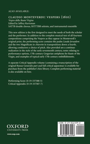 This is the only extensive study of the Monteverdi Vespers, vastly expanding on the author's 1978 set of essays on the subject, long since out-of-print. The volume studies the Vespers from the perspectives of its musical and liturgical origins and context, presents analytical essays on the music, and examines seventeenth-century performance practice as it pertains to the Vespers. Appendices include bibliographies and an analytical discography.