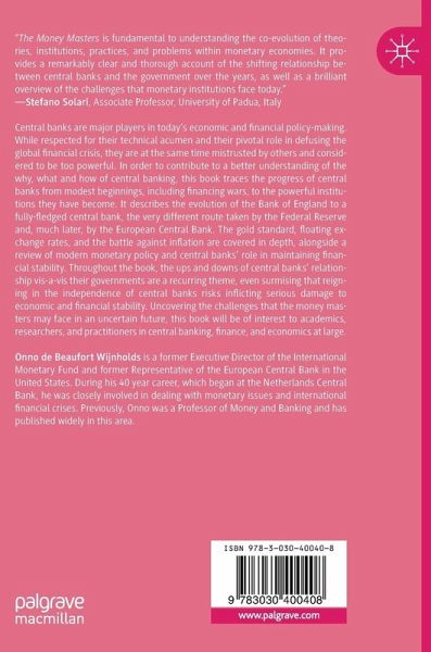 Central banks are major players in today's economic and financial policy-making. While respected for their technical acumen and their pivotal role in defusing the global financial crisis, they are at the same time mistrusted by others and considered to be too powerful. In order to contribute to a better understanding of the why, what and how of central banking, this book traces the progress of central banks from modest beginnings, including financing wars, to the powerful institutions they have become. It describes the evolution of the Bank of England to a fully-fledged central bank, the very different route taken by the Federal Reserve and, much later, by the European Central Bank. The gold standard, floating exchange rates, and the battle against inflation are covered in depth, alongside a review of modern monetary policy and central banks' role in maintaining financial stability. Throughout the book, the ups and downs of central banks' relationship vis-a-vis their governments are arecurring theme, even surmising that reigning in the independence of central banks risks inflicting serious damage to economic and financial stability. Uncovering the challenges that the money masters may face in an uncertain future, this book will be of interest to academics, researchers, and practitioners in central banking, finance, and economics at large.
