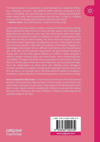 Central banks are major players in today's economic and financial policy-making. While respected for their technical acumen and their pivotal role in defusing the global financial crisis, they are at the same time mistrusted by others and considered to be too powerful. In order to contribute to a better understanding of the why, what and how of central banking, this book traces the progress of central banks from modest beginnings, including financing wars, to the powerful institutions they have become. It describes the evolution of the Bank of England to a fully-fledged central bank, the very different route taken by the Federal Reserve and, much later, by the European Central Bank. The gold standard, floating exchange rates, and the battle against inflation are covered in depth, alongside a review of modern monetary policy and central banks' role in maintaining financial stability. Throughout the book, the ups and downs of central banks' relationship vis-a-vis their governments are arecurring theme, even surmising that reigning in the independence of central banks risks inflicting serious damage to economic and financial stability. Uncovering the challenges that the money masters may face in an uncertain future, this book will be of interest to academics, researchers, and practitioners in central banking, finance, and economics at large.