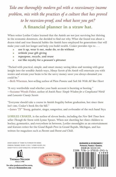 When writer Lorilee Craker learned that the Amish are not just surviving but thriving in the economic downturn, she decided to find out why. Ã Â What she found was about a dozen tried and true financial habits the Amish have employed for generations that will make your cash last longer and help you build wealth.Ã