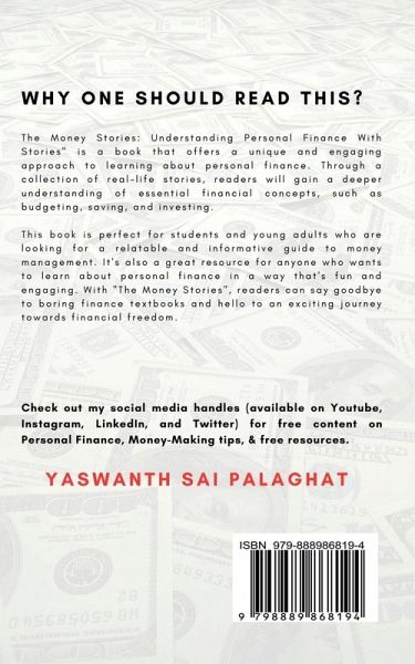 In ""The Money Stories,"" readers will discover the world of personal finance through engaging and relatable stories. This book covers a wide range of financial topics, from budgeting and debt management to investing and estate planning. Each chapter is crafted as a unique story, allowing readers to connect with the material on a deeper level. Through the experiences of the characters in the book, readers will learn valuable lessons about making smart financial decisions and building a secure financial future. Whether you're just starting out on your financial journey or looking to expand your knowledge, ""The Money Stories"" is the perfect guide to understanding personal finance in a meaningful way. With its accessible writing style and entertaining storytelling, ""The Money Stories"" is a must-read for anyone seeking to improve their financial literacy and take control of their financial well-being.