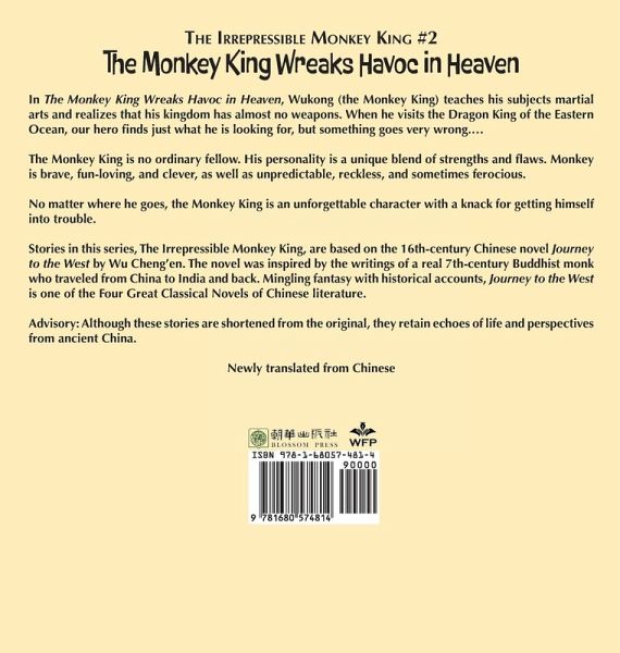 In The Monkey King Wreaks Havoc in Heaven, Wukong (the Monkey King) teaches his subjects martial arts and realizes that his kingdom has almost no weapons. When he visits the Dragon King of the Eastern Ocean, our hero finds just what he is looking for, but something goes very wrong.... The Monkey King is no ordinary fellow. His personality is a unique blend of strengths and flaws. Monkey is brave, fun-loving, and clever, as well as unpredictable, reckless, and sometimes ferocious. No matter where he goes, the Monkey King is an unforgettable character with a knack for getting himself into trouble. Stories in this series, The Irrepressible Monkey King, are based on the 16th-century Chinese novel Journey to the West by Wu Cheng'en. The novel was inspired by the writings of a real 7th-century Buddhist monk who traveled from China to India and back. Mingling fantasy with historical accounts, Journey to the West is one of the Four Great Classical Novels of Chinese literature. Advisory: Though shortened from the original, these stories reflect life and perspectives from ancient China and other cultures. Some of the ideas and attitudes may be unfamiliar to an English-language audience.