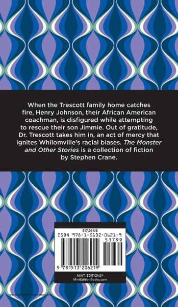 The Monster and Other Stories (1899) is a collection of short fiction by American writer Stephen Crane. "The Monster," a novella, was originally published in 1898 in Harper's Magazine and has since been recognized as one of Crane's most important works, a story which critiques the racism prevalent in American society. In 1899, it was published alongside "The Blue Hotel" and "His New Mittens" in The Monster and Other Stories, which was the last work by Crane to be published during his lifetime. In "The Monster," set in the fictional town of Whilomville, an African American coachmen employed by the wealthy Trescott family is horribly disfigured while attempting to save their young son Jimmie from a house fire. Despite his gruesome injuries, Henry Johnson survives, and Dr. Trescott gratefully nurses him back to health and offers him a place to stay on the family property. Meanwhile, the white townspeople, who view Johnson as a monster, vilify the Trescotts for transgressing the unspoken rules of racial segregation. As Johnson attempts to return to some sense of normalcy, he is rejected both by the African American and white communities, and retreats into a lonely, quiet life. "The Blue Hotel" is a story of violence, fate, and hatred, of a place where loneliness reigns among strangers, and where fear is a troublesome friend. This edition of Stephen Crane's The Monster and Other Stories is a classic of American literature reimagined for modern readers. Since our inception in 2020, Mint Editions has kept sustainability and innovation at the forefront of our mission. Each and every Mint Edition title gets a fresh, professionally typeset manuscript and a dazzling new cover, all while maintaining the integrity of the original book. With thousands of titles in our collection, we aim to spotlight diverse public domain works to help them find modern audiences. Mint Editions celebrates a breadth of literary works, curated from both canonical and overlooked classics from writers around the globe.