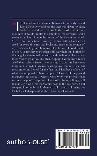 This book is based on actual events throughout my life. I must warn you, my story is not for the squeamish. So if you are easily offended, I urge you to put this book down. I wrote this book using journals I have kept over the years, and it is truth . . . So brace yourselves; it’s going to be a bumpy ride . . .