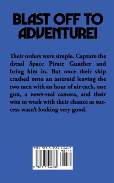 Their orders were simple. Capture the dread Space Pirate Gunther and bring him in. But once their ship crashed onto an asteroid leaving the two men with an hour of air each, one gun, a news-real camera, and their wits to work with their chance at success wasn’t looking very good.