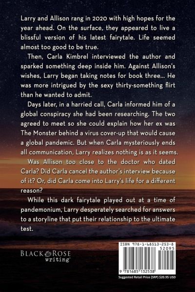 Larry and Allison rang in 2020 with high hopes for the year ahead. On the surface, they appeared to live a blissful version of his latest fairytale. Life seemed almost too good to be true. Then, Carla Kimbrel interviewed the author and sparked something deep inside him. Against Allison's wishes, Larry began taking notes for book three... He was more intrigued by the sexy thirty-something flirt than he wanted to admit. Days later, in a harried call, Carla informed him of a global conspiracy she had been researching. The two agreed to meet so she could explain how her ex was The Monster behind a virus cover-up that would cause a global pandemic. But when Carla mysteriously ends all communication, Larry realizes nothing is as it seems. Was Allison too close to the doctor who dated Carla? Did Carla cancel the author's interview because of it? Or, did Carla come into Larry's life for a different reason? While this dark fairytale played out at a time of pandemonium, Larry desperately searched for answers to a storyline that put their relationship to the ultimate test.