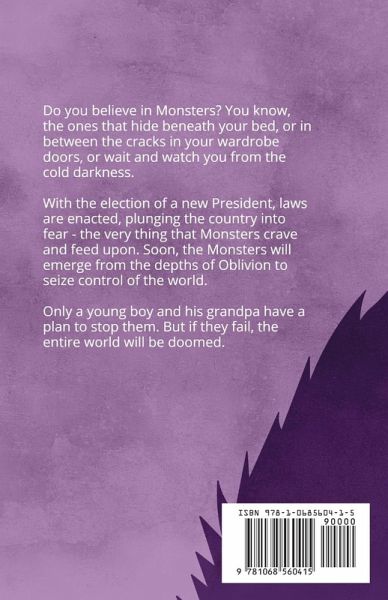 Do you believe in Monsters? You know, the ones that hide beneath your bed, or in between the cracks in your wardrobe doors, or wait and watch you from the cold darkness. With the election of a new President, laws are enacted, plunging the country into fear - the very thing that Monsters crave and feed upon. Soon, the Monsters will emerge from the depths of Oblivion to seize control of the world. Only a young boy and his Grandpa have a plan to stop them. But if they fail, the entire world will be doomed.
