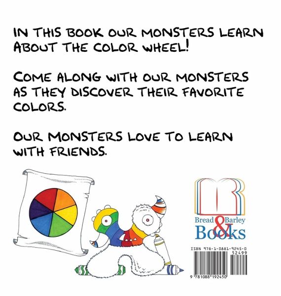 This is a preschool age book about learning colors. In this book our monsters learn about the color wheel! Come along with our monsters as they discover their favorite colors. Our Monsters love to learn with friends.