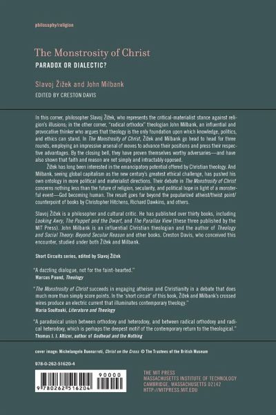 A militant Marxist atheist and a "Radical Orthodox” Christian theologian square off on everything from the meaning of theology and Christ to the war machine of corporate mafia. "What matters is not so much that Zizek is endorsing a demythologized, disenchanted Christianity without transcendence, as that he is offering in the end (despite what he sometimes claims) a heterodox version of Christian belief.”—John Milbank "To put it even more bluntly, my claim is that it is Milbank who is effectively guilty of heterodoxy, ultimately of a regression to paganism: in my atheism, I am more Christian than Milbank.”—Slavoj Zizek In this corner, philosopher Slavoj Zizek, a militant atheist who represents the critical-materialist stance against religion's illusions; in the other corner, "Radical Orthodox” theologian John Milbank, an influential and provocative thinker who argues that theology is the only foundation upon which knowledge, politics, and ethics can stand. In The Monstrosity of Christ, Zizek and Milbank go head to head for three rounds, employing an impressive arsenal of moves to advance their positions and press their respective advantages. By the closing bell, they have not only proven themselves worthy adversaries, they have shown that faith and reason are not simply and intractably opposed. Zizek has long been interested in the emancipatory potential offered by Christian theology. And Milbank, seeing global capitalism as the new century's greatest ethical challenge, has pushed his own ontology in more political and materialist directions. Their debate in The Monstrosity of Christ concerns the future of religion, secularity, and political hope in light of a monsterful event—God becoming human. For the first time since Zizek's turn toward theology, we have a true debate between an atheist and a theologian about the very meaning of theology, Christ, the Church, the Holy Ghost, Universality, and the foundations of logic. The result goes far beyond the popularized atheist/theist point/counterpoint of recent books by Christopher Hitchens, Richard Dawkins, and others. Zizek begins, and Milbank answers, countering dialectics with "paradox.” The debate centers on the nature of and relation between paradox and parallax, between analogy and dialectics, between transcendent glory and liberation. Slavoj Zizek is a philosopher and cultural critic. He has published over thirty books, including Looking Awry, The Puppet and the Dwarf, and The Parallax View (these three published by the MIT Press). John Milbank is an influential Christian theologian and the author of Theology and Social Theory: Beyond Secular Reason and other books. Creston Davis, who conceived of this encounter, studied under both Zizek and Milbank.