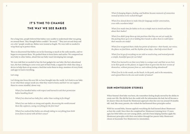 Simone Davies is an AMI (Association Montessori Internationale) Montessori teacher, as well as the author of The Montessori Notebook, the popular blog and Instagram where shes gives tips, answers questions, and provides online workshops to parents around the world. A native Australian, she and her family live in Amsterdam, where she runs parent-child classes at the Jacaranda Tree Montessori school.  Junnifa Uzodike, an AMI-trained Montessori teacher, sits on the executive board of AMI. She runs a Montessori school, Fruitful Orchard, in Abuja, Nigeria, where she lives with her husband and three young children.